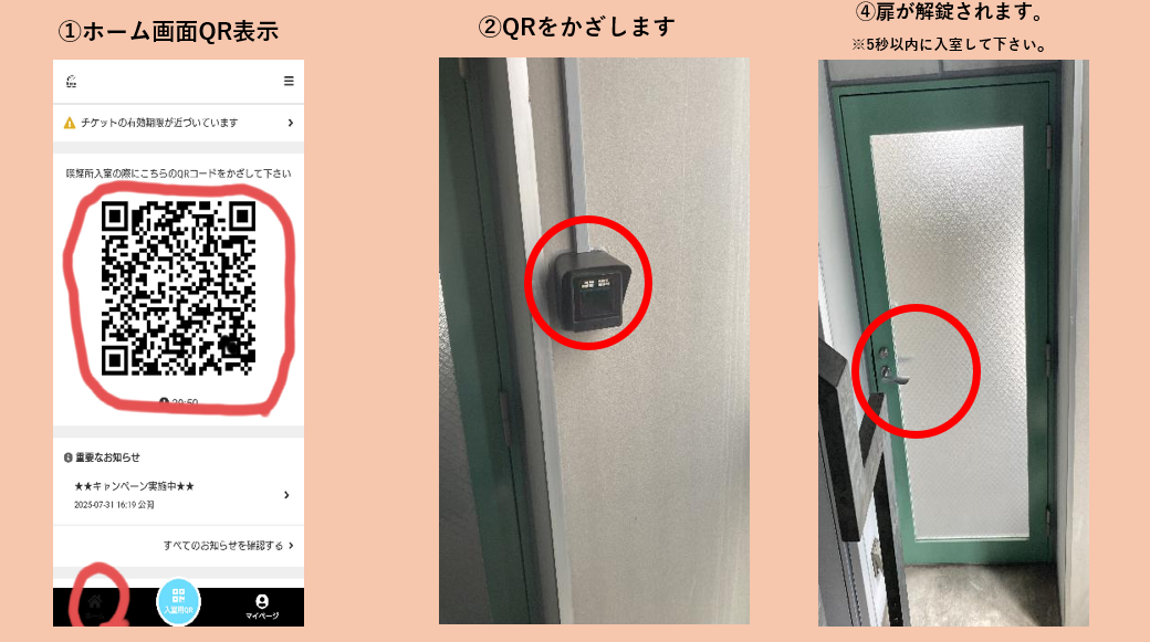店舗ご利用ガイド【月額会員入室方法について】